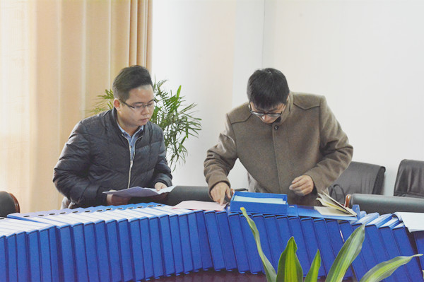 随后,检查组对照测评指标,从思想道德建设、领导班子建设、师德师风建设、校园文化建设、校园环境建设、阵地建设管理等6个方面,对必赢官网文明校园创建材料进行认真检查审核。