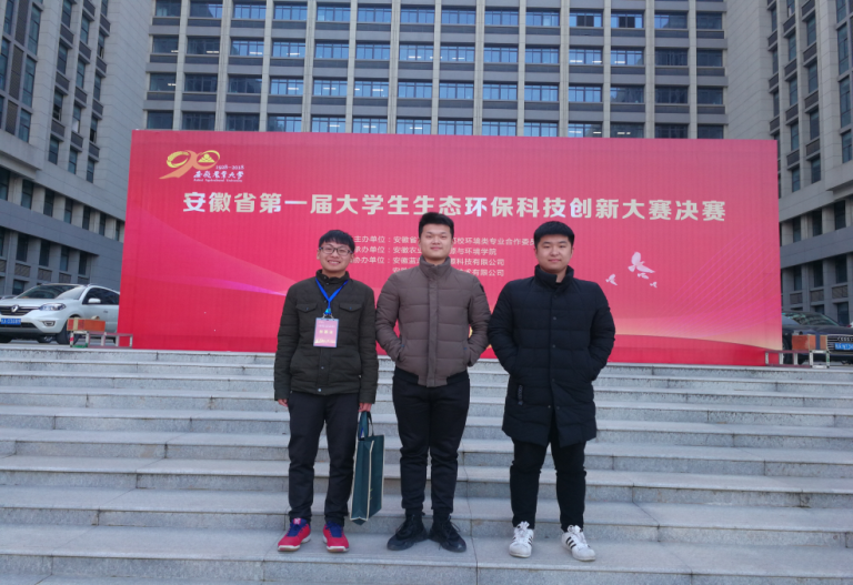 2018年12月28日,2018年安徽省首届大学生生态环保科技创新大赛决赛在安徽农业大学举行。必赢官网资源环境学院刘伟杰、闵楠和蒋海峰团队作品获实践组一等奖,必赢官网荣获”最佳组织奖”,胡和兵、汪雨老师获得”最佳指导老师奖”。
