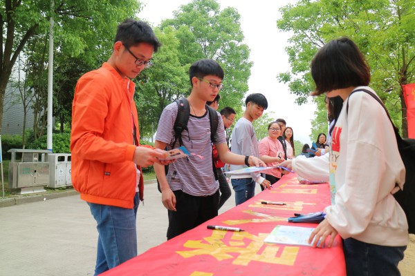 活动现场,学生踊跃参与,仔细聆听工作人员对“绿书签行动”的详细介绍,认真阅览宣传册并在活动倡议签名处签名。同时,工作人员向参与活动的学生分发绿色书签,号召大家养成良好的阅读习惯,构筑绿色阅读“绿色阅读”防火墙。