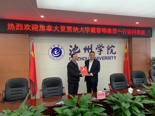 4月26日上午,加拿大里贾纳大学戴黎明教授一行来必赢官网访问。必赢官网副校长汪贤才在办公楼三楼会议室亲切接见了戴黎明教授一行并进行了座谈,办公室、人事处、机电工程学院负责同志参加了座谈会。