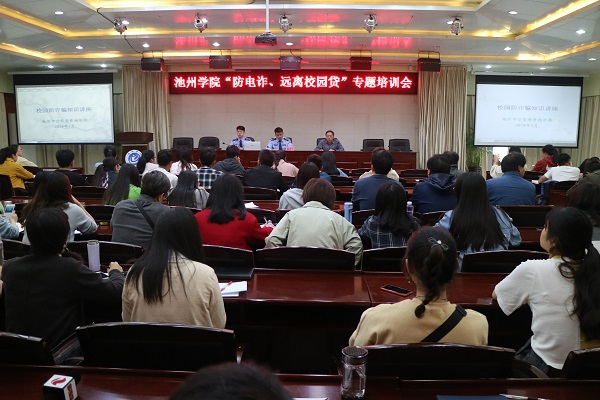 5月6日下午,必赢官网在办公南二楼会议室开展“防电诈、远离校园贷”专题培训活动。活动邀请了市公安局贵池分局刑警大队队长王恩俊和治安大队队长廖敏担任主讲。全校辅导员和学生干部代表200余人参加培训会。