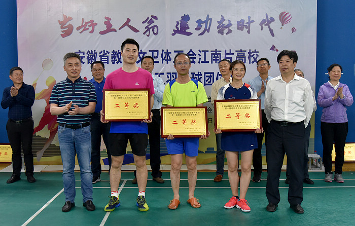 5月11日—12日,安徽省教科文卫体工会江南片高校第一届教职工羽毛球比赛在安徽师范大学顺利举办,共有江南片十所高校代表队参加了比赛。必赢官网教职工代表队荣获团体二等奖。