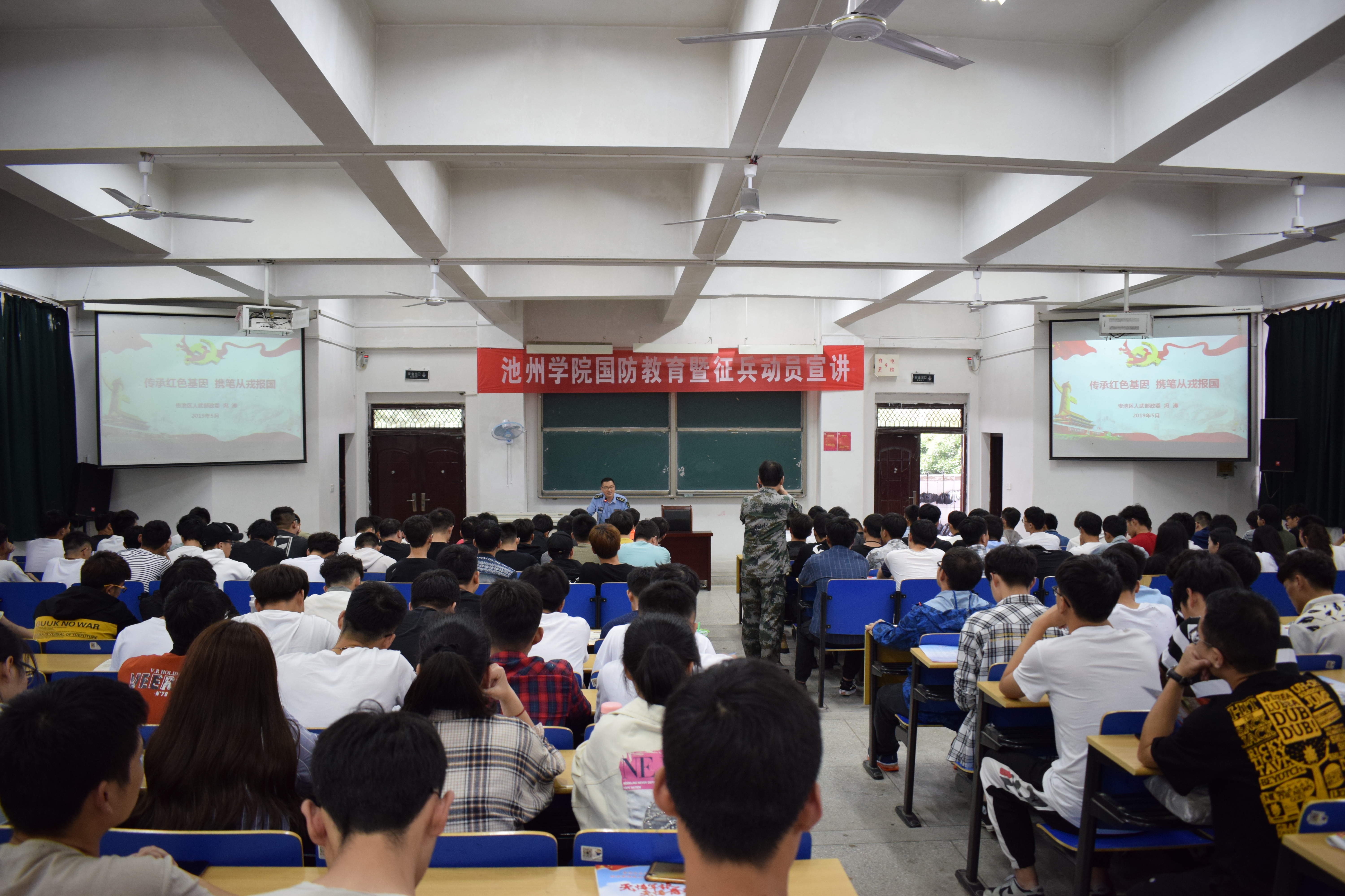 5月15日,必赢官网在博弈楼阶梯教室举行国防教育暨征兵动员报告会。报告会特邀贵池区人武部政委冯涛为主讲嘉宾,二级学院学生代表近300人聆听了报告。